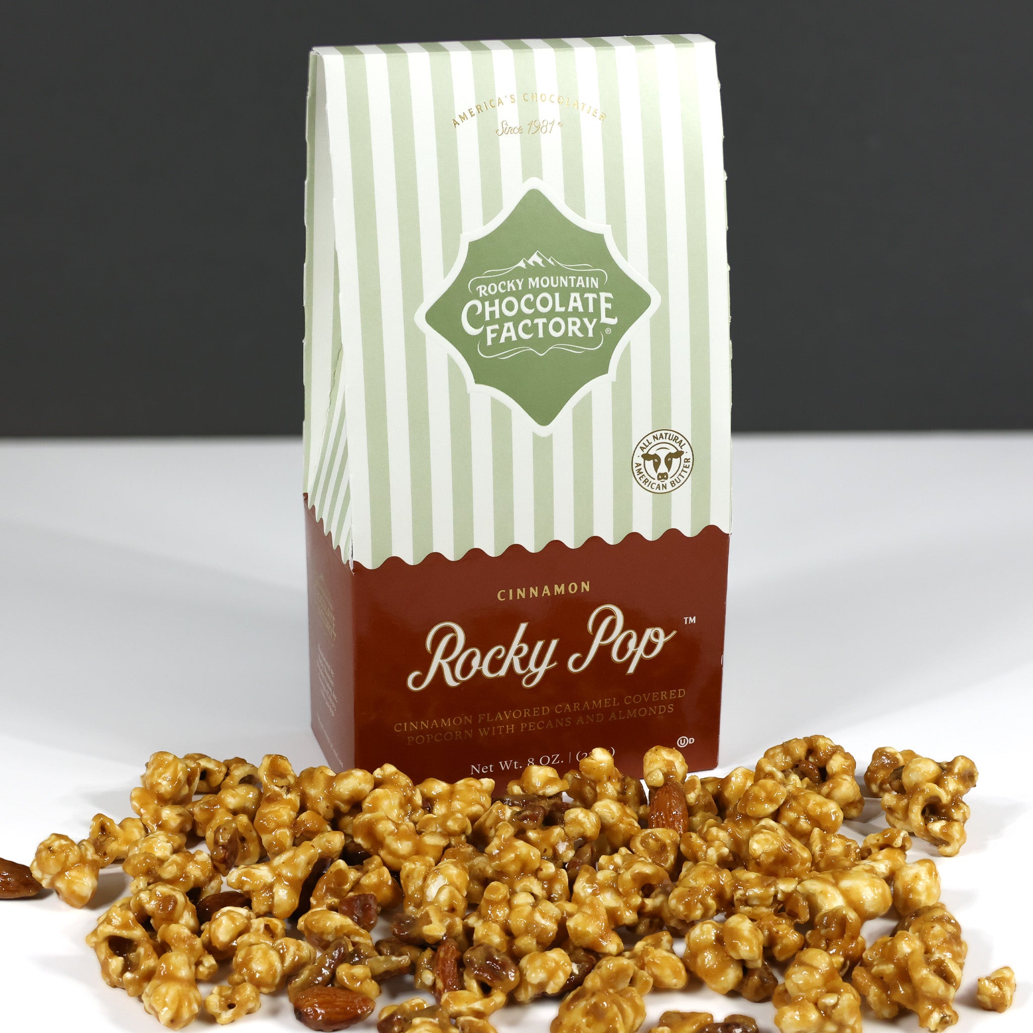 For a limited time only! Cinnamon flavored caramel-coated popcorn for fall with almonds and pecans. One of our most popular in-store items is now conveniently packaged so you can enjoy Rocky Pop wherever the craving hits!